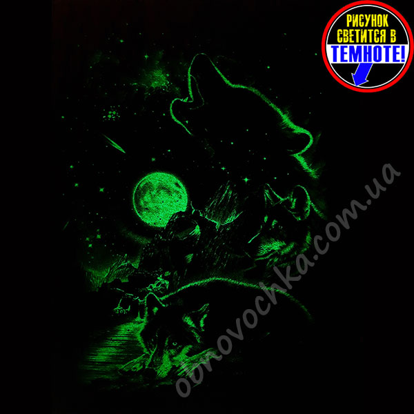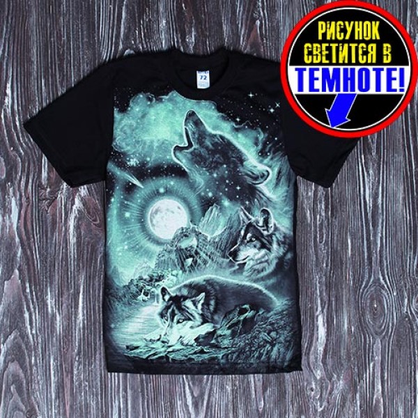 Купити футболку для дітей і підлітків "Зграя вовків", малюнок якої світиться в темряві, можна в інтернет-магазині "Обновочка".
